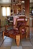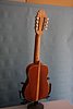 Vue de dos : Fait en merisier frisé, le manche en lui aussi en merisier frisé et incrusté de palissandre
