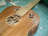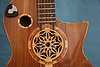 Dessus en cèdre avec touche d'ébène. Pont en bois de rose, dos et côtés en érable frisé. Joint : à la 12e frett. Zéro Frett